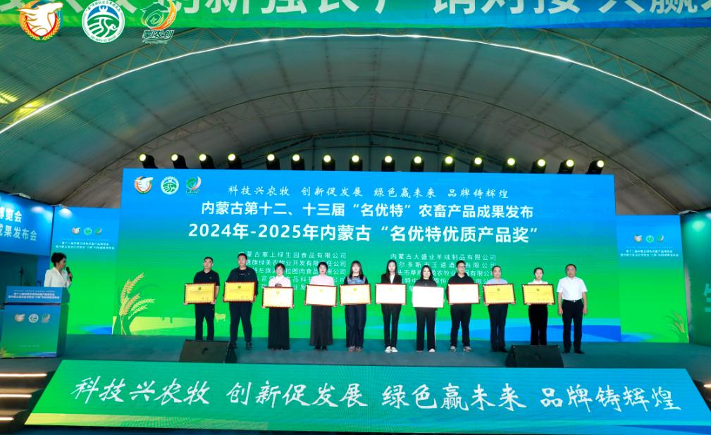 發(fā)布會上自治區(qū)農(nóng)牧廳二級巡視員侯雁冰、畜牧局局長紅海、自治區(qū)人民政府駐上海辦事處黨組書記、主任李志剛、自治區(qū)農(nóng)牧廳鄉(xiāng)村產(chǎn)業(yè)發(fā)展和農(nóng)墾處處長邢瑞、農(nóng)畜產(chǎn)品質(zhì)量安全中心副主任云巖春、協(xié)會會長徐建忠、內(nèi)蒙古綠色與有機(jī)食品協(xié)會常務(wù)副會長、高級顧問邢黎明為獲得第十二、十三屆名優(yōu)特認(rèn)證的企業(yè)頒發(fā)獎牌并合影留念。