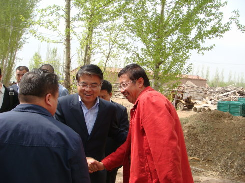 自治區(qū)政府何副秘書(shū)長(zhǎng)(中)、土左旗黨委王書(shū)記(左二)在基地指導(dǎo)工作: