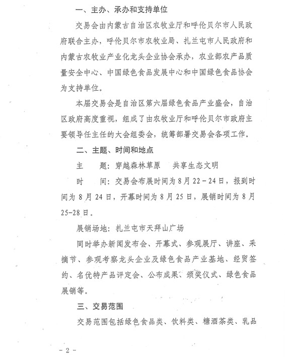 關(guān)于舉辦2013·內(nèi)蒙古(扎蘭屯)第六屆綠色食品交易會的通知