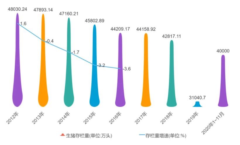 2020年中國生豬存欄量月度走勢(shì)圖