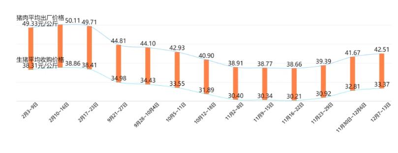 2020年中國生豬及豬肉價(jià)格走勢(shì)圖: