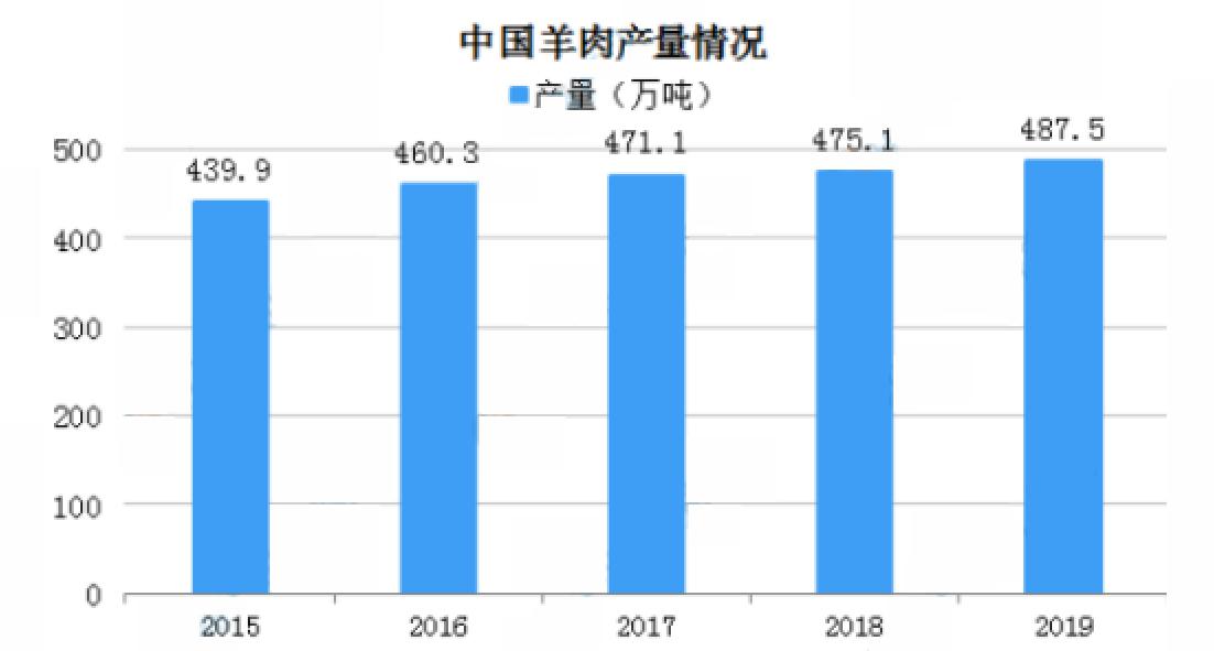 2019年內(nèi)蒙古羊肉產(chǎn)量位居第一達(dá)到109.8萬噸,新疆、山東排名第二和第三,產(chǎn)量分別為60.3萬噸、36.9萬噸,此外,河北、河南、四川、甘肅、云南羊肉產(chǎn)量超20萬噸。2015年全國羊肉產(chǎn)量439.9萬噸,2019年增至487.5萬噸,同比增長2.6%。